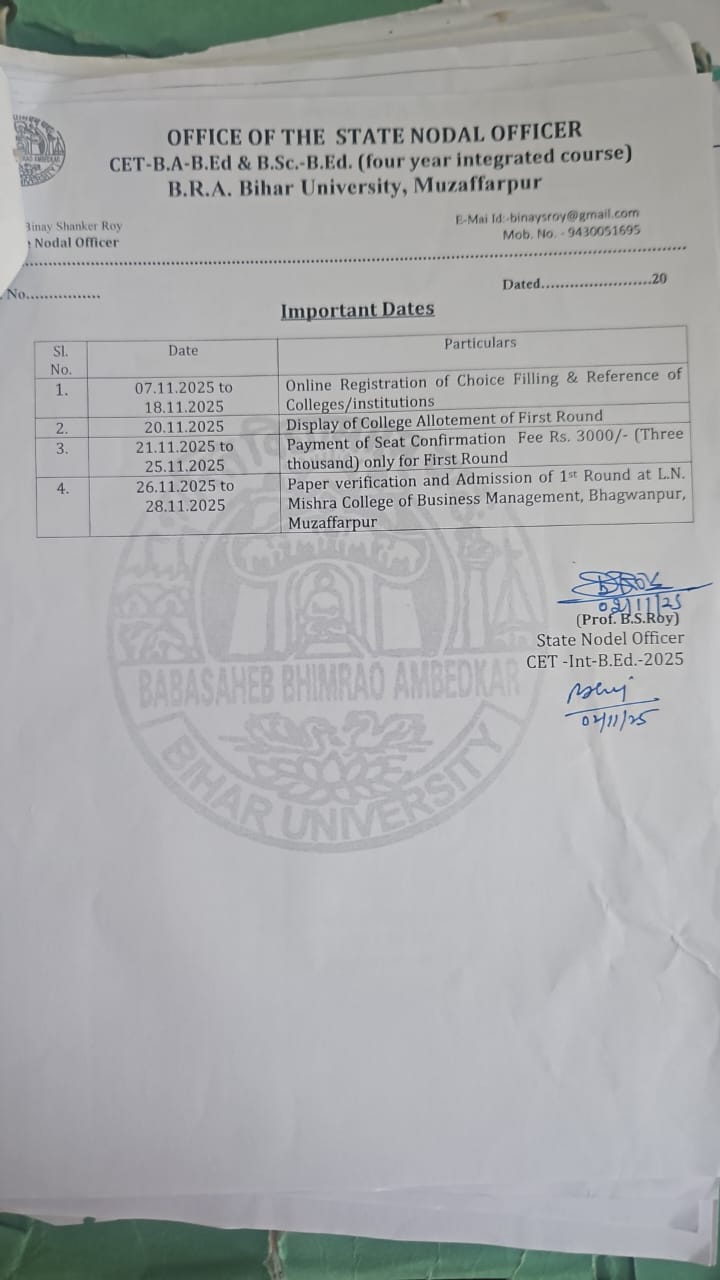 Babasaheb Bhimrao Ambedkar University (BRABU-Muzaffarpur), has released the 1st Merit List on its official website for the examination of Admission for 4 Years Integrated Course CET-B.Ed (CET-Int-B.Ed-2024) B.Sc.- B.Ed./ B.A.-B.Ed State Level Combined Entrance Test- CET For Regular Mode Examination has released on the official website. The exam was conducted in 12 October 2025, and the last date to submit the application form was 26 September 2025. Candidates can check their 1st Merit List using their Enrollment Number, Registration Number, or Date of Birth by logging into the portal. The direct link is provided below.