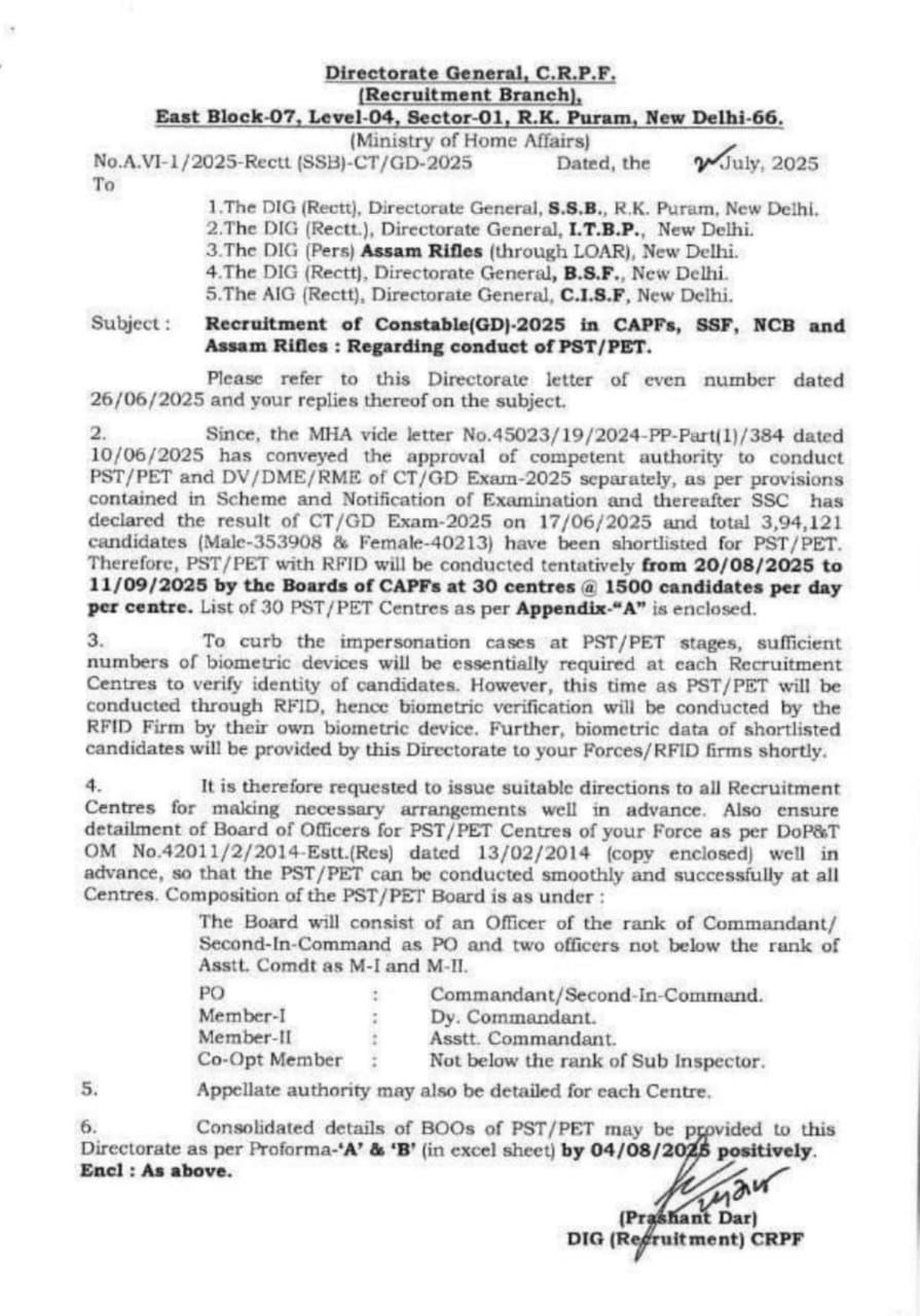 Check PET / PST Admit Card Notice |